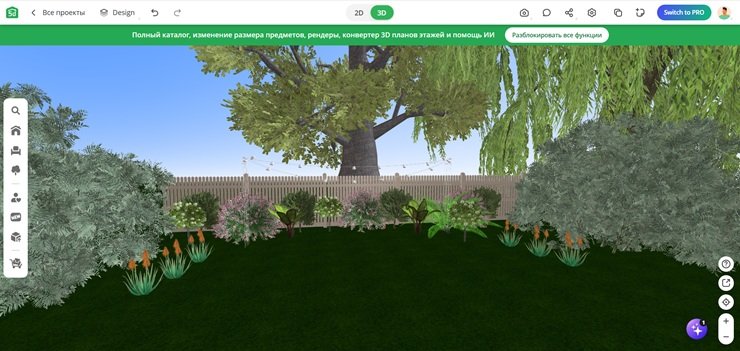 Составить наглядный план помогут специальные сервисы. Например, онлайн-планировщик «Соткин» или программа Planner 5D. «Соткин» подойдёт для новичков, растения разделены по категориям: есть вьющиеся, хвойные, плодовые и так далее. В Planner 5D предусмотрен поиск: можно ввести название растения, и сервис предложит подходящие варианты. В каталоге есть декоративные и плодовые культуры, 50% объектов в библиотеке доступно бесплатно. На макете можно оставлять комментарии.