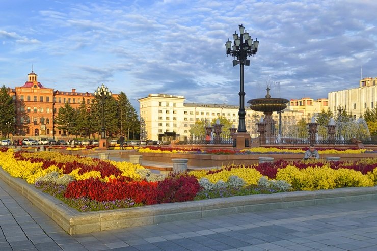 Вторая главная площадь города — Комсомольская. В хорошую погоду отсюда видны не только берега Амура, но и высотные здания на китайской стороне.