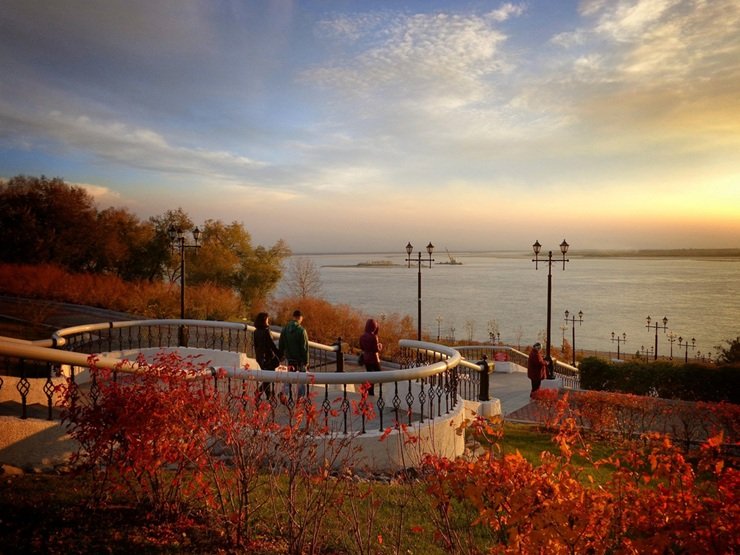 Лучшее время для поездки — конец мая и начало июня. Будет тепло, но без июльской духоты, Амур будет полноводный после весеннего паводка, а в парках всё как раз зазеленеет.