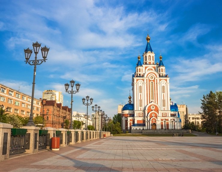Комсомольская площадь и Градо-Хабаровский Собор Успения Божией Матери