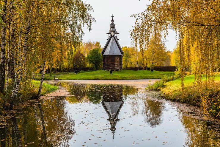 За 7–10 минут неспешной ходьбы можно дойти от монастыря до музея деревянного зодчества под открытым небом, где воссоздана атмосфера старинного костромского села. На большой территории можно увидеть настоящие избы, амбары, колодцы, мельницы, храмы XVII–XIX веков, перевезённые из разных уголков региона.