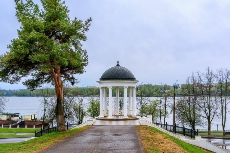 Прогуляйтесь пару минут вдоль берега Волги, чтобы посмотреть на белоснежную ротонду с колоннами — один из символов Костромы, названный в честь драматурга Александра Островского. Оттуда открывается прекрасный вид на Волгу и противоположный берег. В хорошую погоду можно рассмотреть купола костромских храмов и силуэты старого центра.