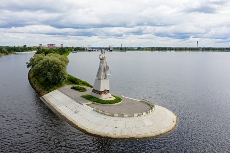 Монумент находится на косе дамбы Рыбинской ГЭС, с берега доступа к нему нет. Фото: Collection Maykova / Shutterstock / Fotodom