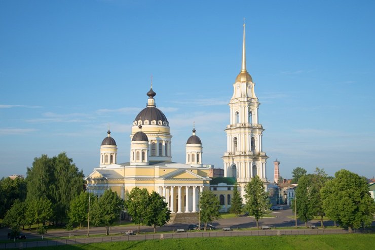 Интересно, что её построили в 1804 году, а сам собор начали возводить только спустя полвека, когда старый храм стал тесен для горожан. В итоге появился комплекс с величественными колоннами и мощными куполами, который стал одной из основных достопримечательностей Рыбинска.