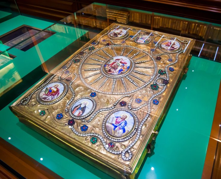 Интересен зал в стиле библиотеки XIX века, где представлено собрание книжных памятников различных эпох. В центре зала расположены впечатляющие своими размерами роскошно украшенные напрестольные Евангелия XVIII века.