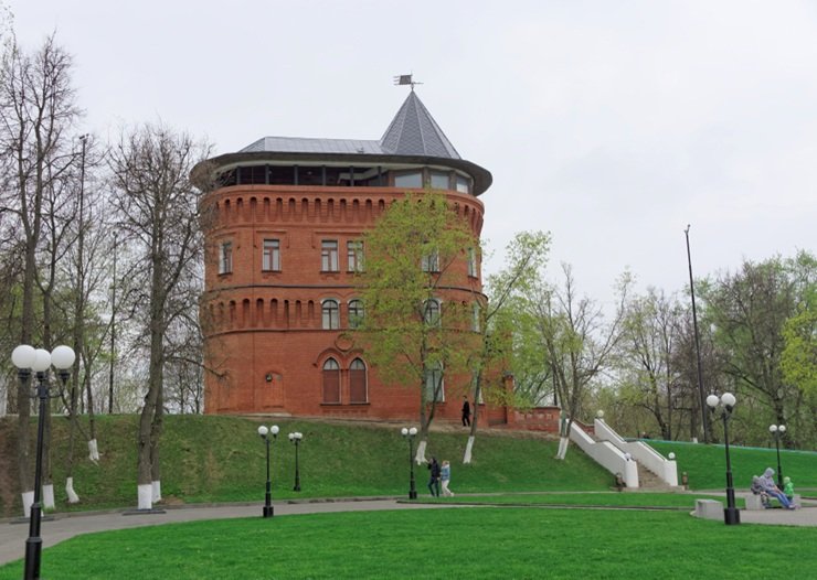 Находится в здании водонапорной башни, изначально построенной в 1860-е годы, но полностью перестроенной в 1912 году — в неорусском стиле. Необычный архитектурный элемент нового строения — окна разной формы и высоты в каждом ярусе.