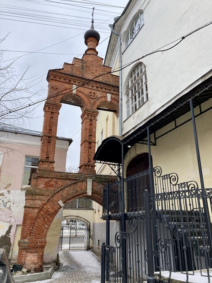 Напротив Дмитриевского собора между домами 35 и 37 на Большой Московской улице можно увидеть необычную краснокирпичную арку, вмонтированную в здание. Но это не арка, а декоративная звонница, построенная в начале 2000-х в память об утраченной такой же храмовой звоннице при Александро-Невской церкви, которая в этом месте и располагалась.