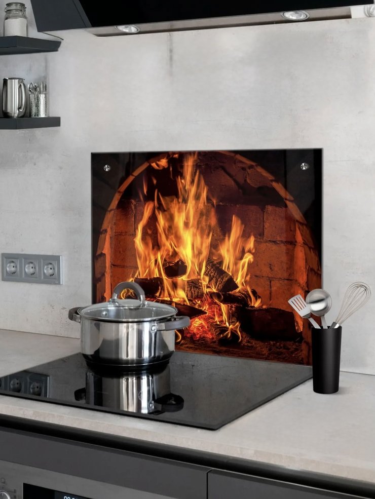 Стеклянная панель с фотопечатью на кухонном фартуке. Источник