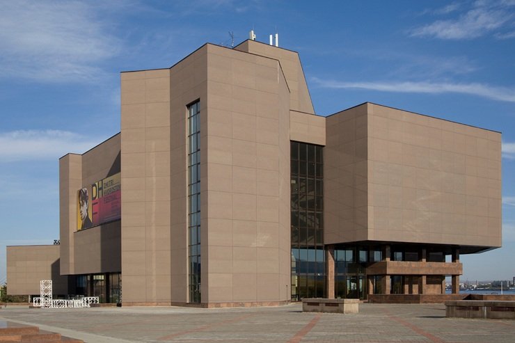 Это крупнейшая в Сибири выставочная площадка современного искусства. Здание построено в стиле советского модернизма и напоминает силуэт гор, а внутри музей похож на лабиринт со множеством залов и площадок.