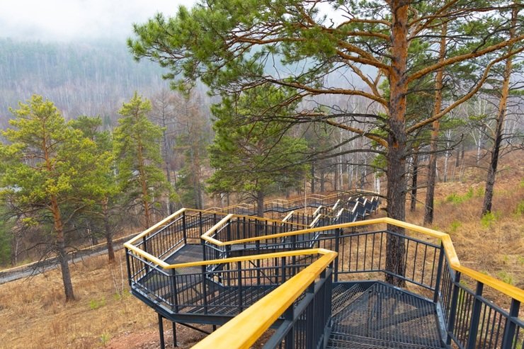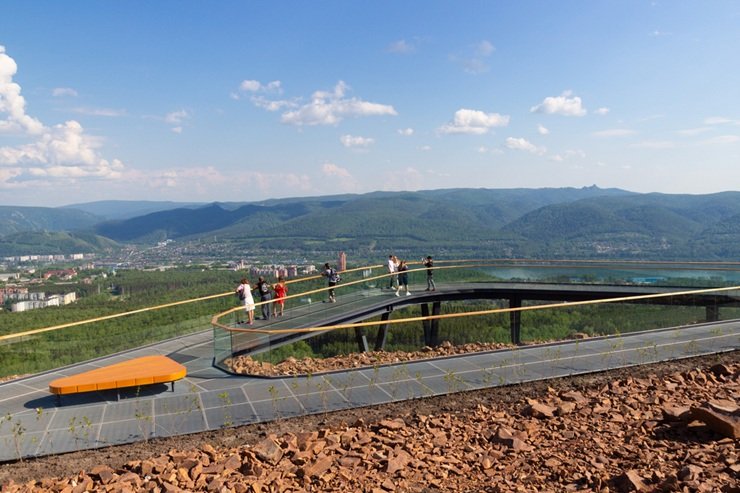 Живописный горный массив на юго-западной окраине города протянулся на 20 километров, а лестница на Торгашинский хребет входит в Книгу рекордов России как самая длинная в стране. Чтобы попасть на вершину, придётся пройти по 1 683 ступеням — 1,2 км. Предусмотрено несколько зон отдыха, где можно полюбоваться видами. Если идти спокойно, подъём займёт примерно 40 минут, спуск — 20.