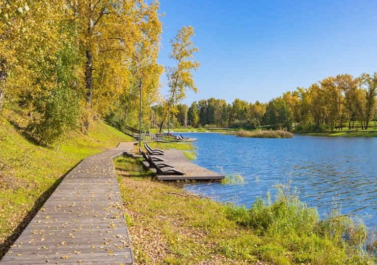 Один из самых уютных природных уголков в Красноярске. Здесь можно пройтись по пешеходным маршрутам, отдохнуть в зоне для пикников, поиграть в настольный теннис или футбол на спортивных площадках.