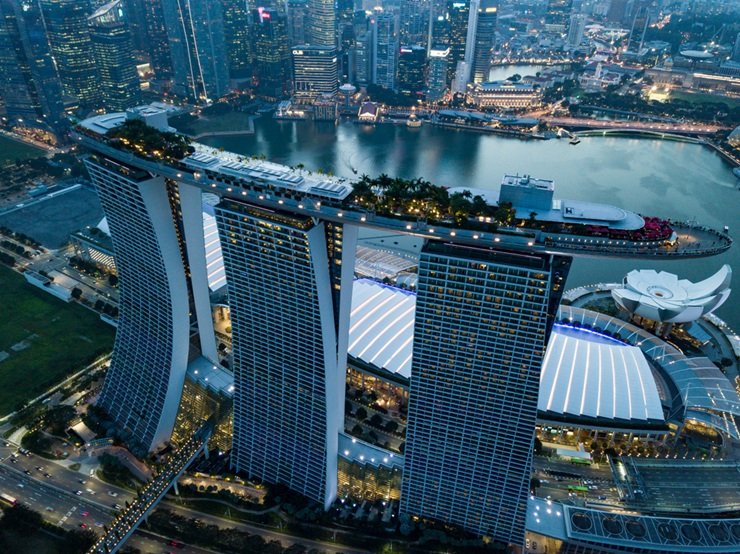 Отель Marina Bay Sands в Сингапуре с самым большим в мире открытым бассейном, смотровой площадкой, барами и лаундж-зоной на крыше. Фото: Adel Newman / Shutterstock / Fotodom