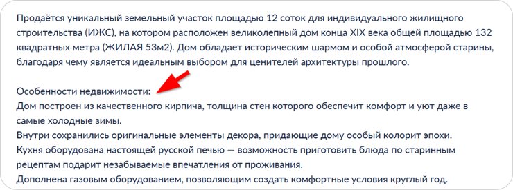 В объявлении на Циане продавец перечисляет плюсы покупки старинного дома