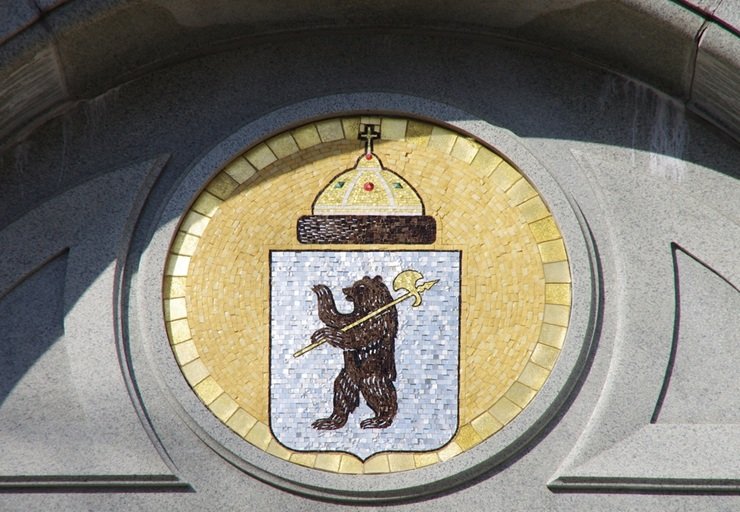 Герб Ярославля создан на основе исторического образа с шапкой Мономаха, чьё изображение говорит о том, что в городе царствовали великие князья. Фото: Natalia Sidorova / Shutterstock / Fotodom