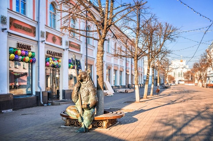 По обе стороны улицы Кирова расположены старинные здания конца XIX — начала XX века: купеческие особняки, старые гостиницы и бывшие трактиры. Сегодня в этих особняках разместились магазины и сувенирные лавки, кофейни и рестораны. Приятно не спеша прогуливаться и разглядывать архитектуру: фасады с лепниной, изящные элементы модерна и строгие линии классицизма.