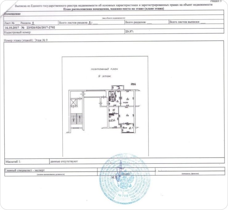 - Квартира: этаж, поэтажный план, информация о материалах и несущих конструкциях дома.