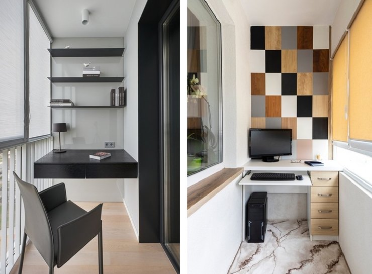 Если квартира небольшая и обустроить рабочее место в ней сложно, утеплённая лоджия с естественным освещением станет идеальным местом для кабинета.