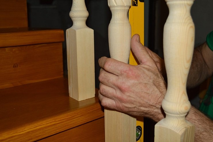 Перед установкой балясины выравнивают по строительному уровню. Фото: Elena_Alex / Shutterstock / Fotodom