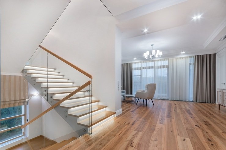 Материал лестницы выбирают по стилю интерьера, бюджету и требованиям к уходу.