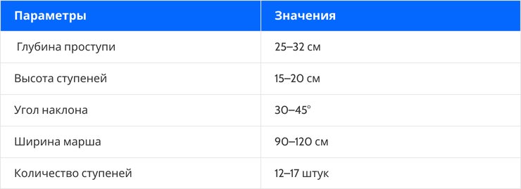 2h + b = 60–64 см, где h — высота ступени, b — глубина проступи