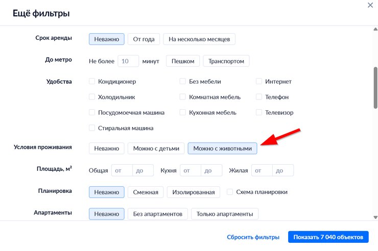 На Циане исключают неподходящие варианты при помощи фильтра «Можно с животными».