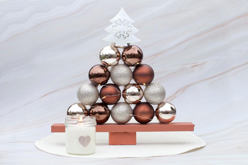 Классическое решение, которое часто встречается в рождественских фильмах, в торговых центрах и магазинах — красные и золотые шары на зелёной ёлке.