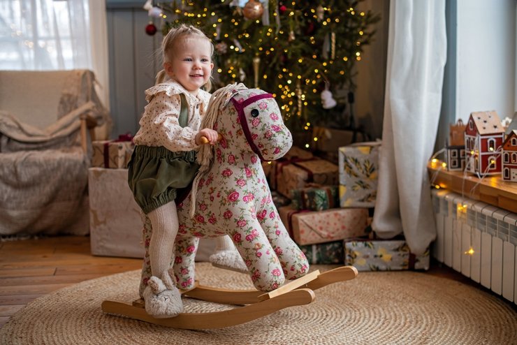 В такой год можно наряжать ёлку ярко и смело. Если у вас давно лежит украшение, которое может показаться слишком акцентным, то это как раз тот случай, когда пора его достать. Можно повесить на ёлку и сам символ года — например, деревянную или стеклянную лошадку-качалку.