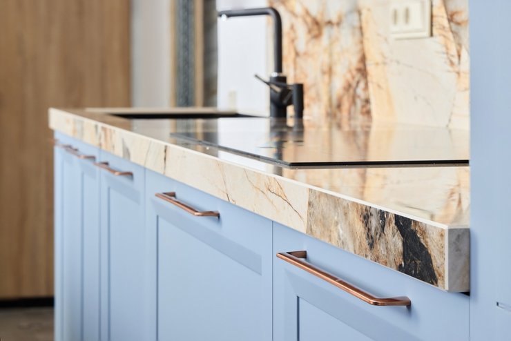 Столешница — главный элемент рабочей зоны, именно она постоянно контактирует с водой, едой и бытовой химией. Она должна быть прочной, долговечной, красивой.