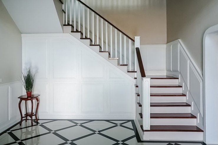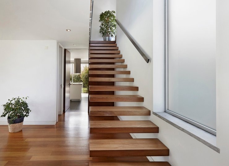 → Правила ухода за материалами. Дерево время от времени покрывают лаком и полируют воском, стеклянные ступени моют с обеих сторон, а керамическая плитка требует влажной уборки и очистки швов. Стоит подумать, за каким материалом вам будет проще и удобнее ухаживать.