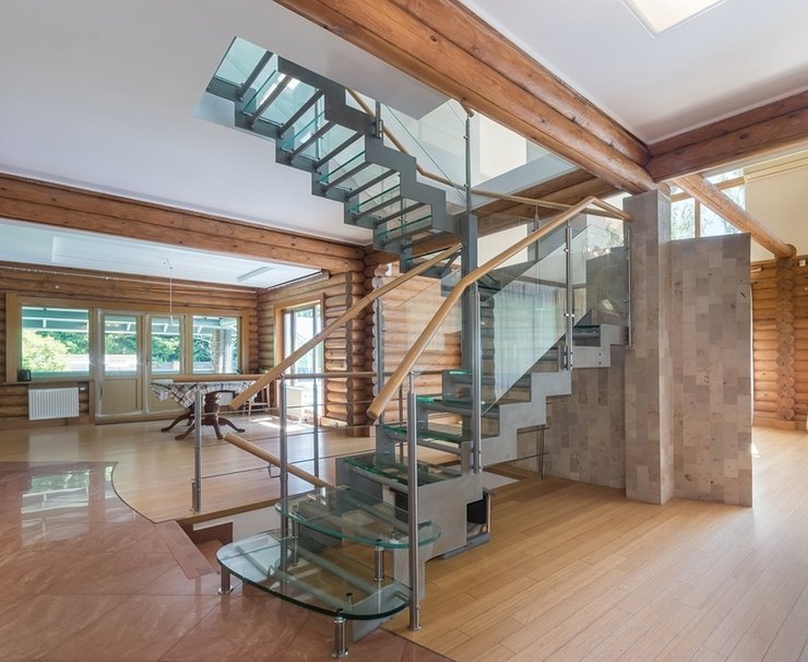 Стеклянные лестницы часто встречаются в современных интерьерах. Они хорошо вписываются в стиль хайтек, минимализм или лофт.