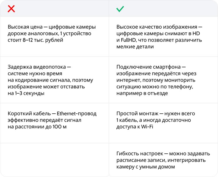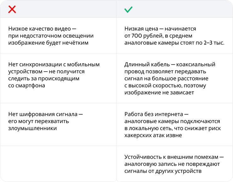 Собрали в таблицу преимущества и недостатки аналоговых камер: