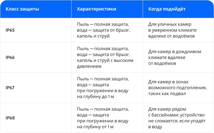 Для камер, которые находятся на улице, важна защита от пыли и влаги. Чтобы дождь и частицы грязи не повредили корпус устройства, он должен быть герметичным.