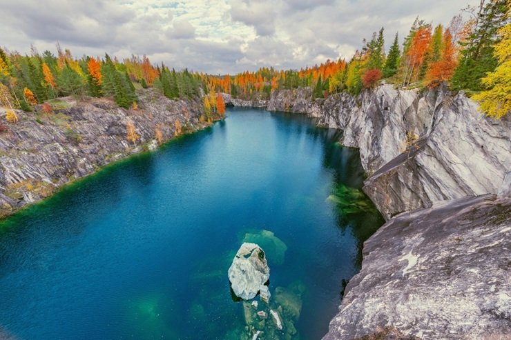 Это знаковое место Карелии, старинный мраморный каньон с глубокими бассейнами и гротами.