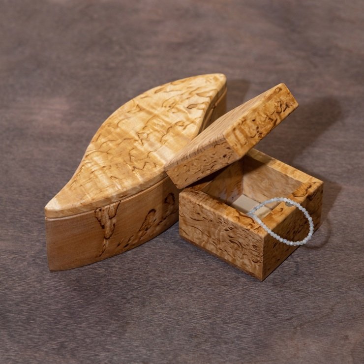 Изделия из карельской берёзы. Резные шкатулки, ложки, панно и украшения из уникальной древесины можно купить в сувенирных лавках «Рускеалы», Сортавалы и в ремесленных мастерских.