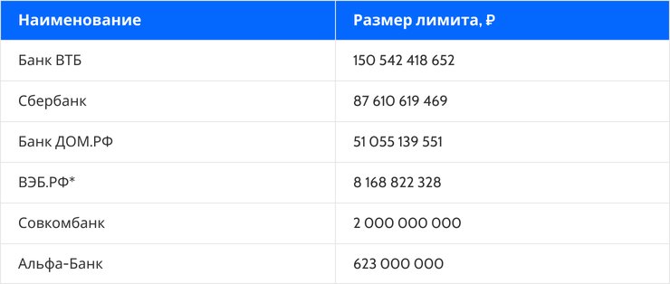 Список кредиторов и сумма лимита на момент написания статьи: