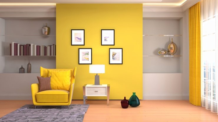 Яркая стена прекрасно смотрится в просторных помещениях, но маленькие может уменьшить визуально. Для небольших комнат лучше подобрать фоновые светлые оттенки.