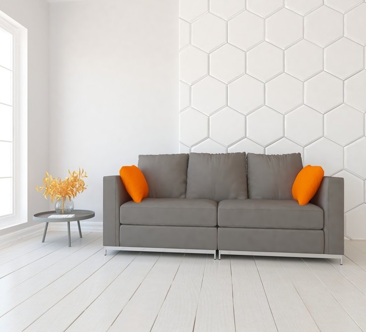 Лоскутная техника, или пэчворк — панно из небольших фрагментов одинакового или разного размера. Сложная работа, но интерьер получается уникальным.
