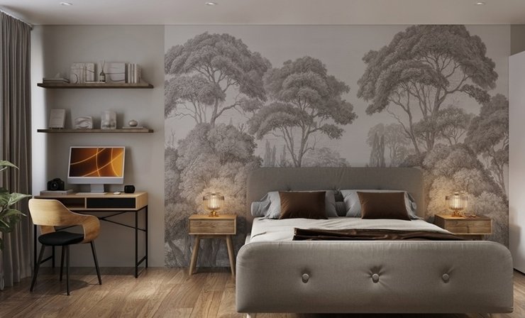 - По назначению помещения. К примеру, в отделке спальни редко используют активные принты и яркие тона, так как это место отдыха.