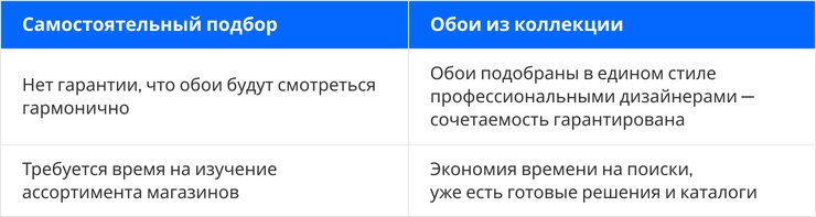 Готовые коллекции обоев разработаны дизайнерами, гарантируют сочетаемость и облегчают выбор.