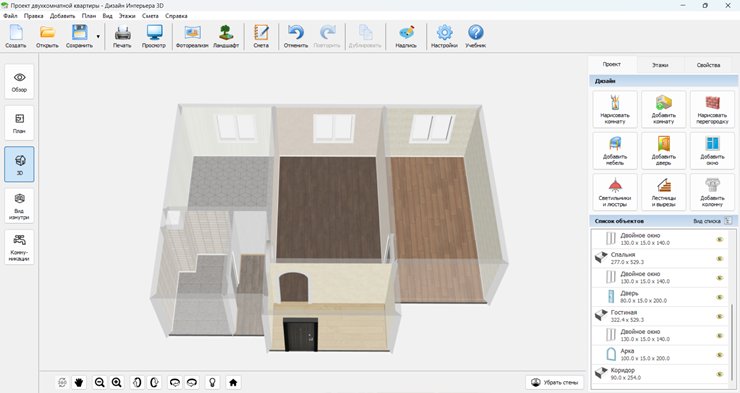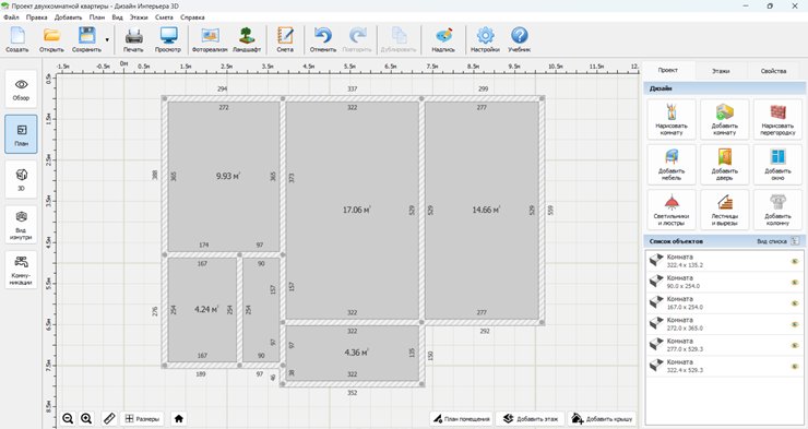 Как спланировать двушку в программе «Дизайн Интерьера 3D»