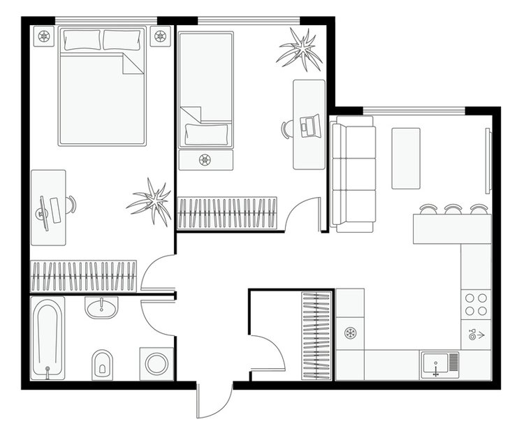 Перед тем как что-либо двигать, нужно понять, что ни при каких обстоятельствах двигать нельзя. Мы точно не двигаем несущие стены, стояки и вентканалы. А перенос некоторых коммуникаций, например радиаторов, нужно согласовать с УК.