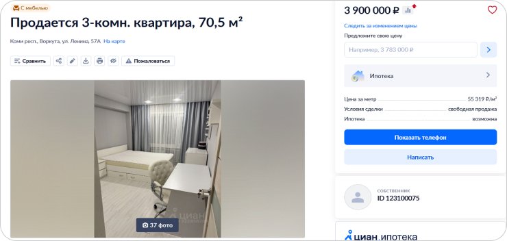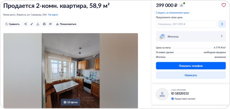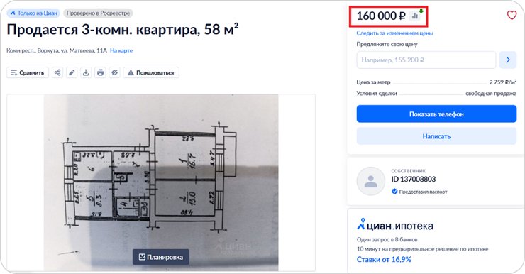 Встречаются и такие цены. 3-комн. квартира, 58 кв. м, 2/5 этаж, 1983 г.п. Источник