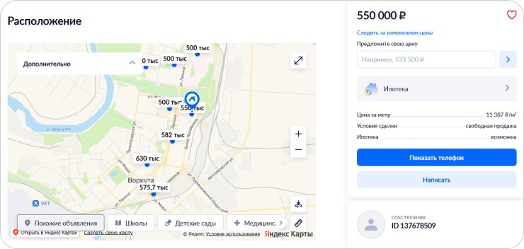 Рекордные минимумы стоимости можно найти за пределами городской черты, в посёлках — шахтёрских спутниках Воркуты. Там встречаются цены, которые в центральной России кажутся нереальными: 100–200 тыс. рублей за квартиру. Но эта символическая стоимость компенсируется коммуналкой, удалённостью и сложностью быта в оторванных от большого города поселениях.