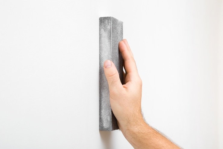 Когда поверхность полностью высохла, можно начинать шлифовку. Для этого потребуется шлифовальный брусок или тёрка, на которую крепится абразивный материал.