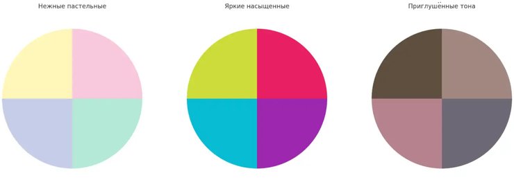 Используйте цветовой круг Иттена: ориентируйтесь на аналоговую схему, контрастное сочетание или монохром.