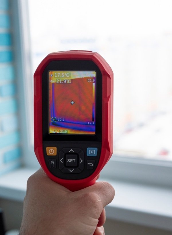 Поможет тепловизор — прибор, который показывает холодные участки в комнате и определяет, откуда идёт холод. На тепловизоре тёплые участки обозначаются оранжевым и жёлтым, а холодные — голубым и синим.