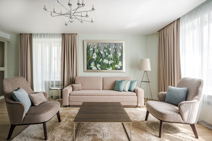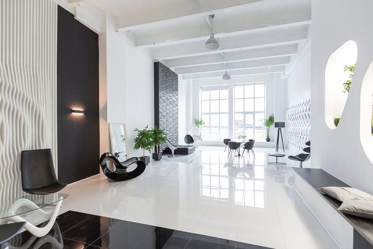 Как и любое большое помещение, комната с высокими потолками требует профессионализма дизайнера. В маленькой комнате мебель стоит почти вплотную друг к другу, а в большой надо равномерно заполнить пространство, зонировать его. С потолками — та же история. Если не принимать в расчёт высоту комнаты, то она рискует показаться пустой и неуютной.
