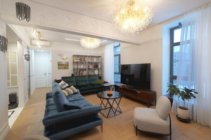 Лучше всего высокие потолки раскрываются в стилях, которые любят простор. Классика и неоклассика подчёркивают высоту лепниной, карнизами, зеркалами и эффектными люстрами.